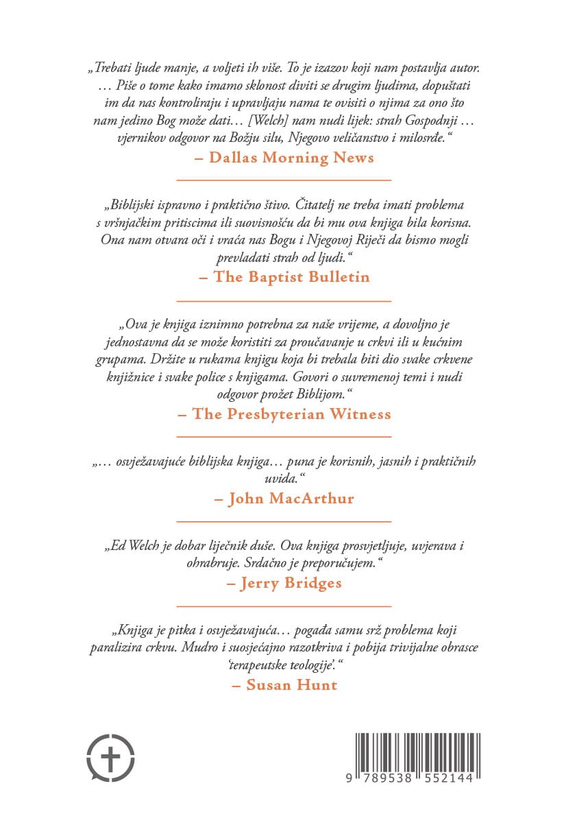 Ed Welch istražuje korijene straha od mišljenja drugih, osjećaj manje vrijednosti i potrebe za pripadanjem, ističući kako ti obrasci često vode do toga da ljudi postaju “veliki” u našim očima, dok Bog postaje “malen”. Welch nudi biblijske odgovore i praktične korake kako bi čitatelji osnažili svoju vjeru i vratili Boga na prvo mjesto u svom životu. Kroz niz primjera i pitanja za samoprocjenu, knjiga potiče na razmišljanje o vlastitim motivima i na izgradnju dubljeg povjerenja u Boga, umanjujući utjecaj tuđeg mišljenja na vlastite odluke i vrijednost.