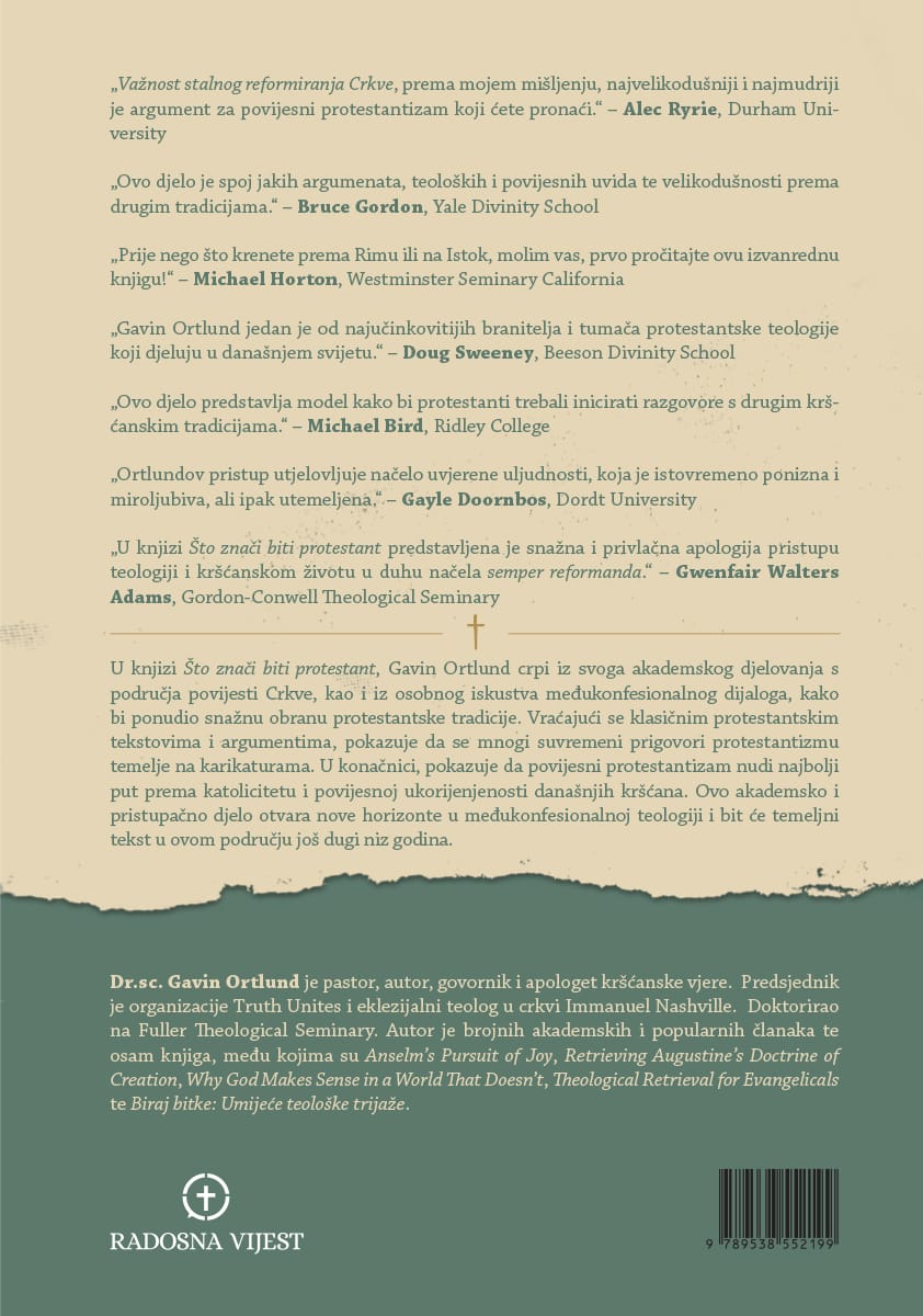 Poznat po jasnom, pristupačnom stilu pisanja, u ovoj knjizi ističe temeljne vrijednosti protestantizma poput autoriteta Svetog pisma, opravdanja po vjeri, te važnosti osobne vjere i zajedničkog bogoslužja. Ortlund ne izbjegava ni kritička pitanja, već poziva čitatelja na promišljanje o tome što znači biti protestant danas – kako u osobnom životu, tako i u širem društvenom kontekstu.